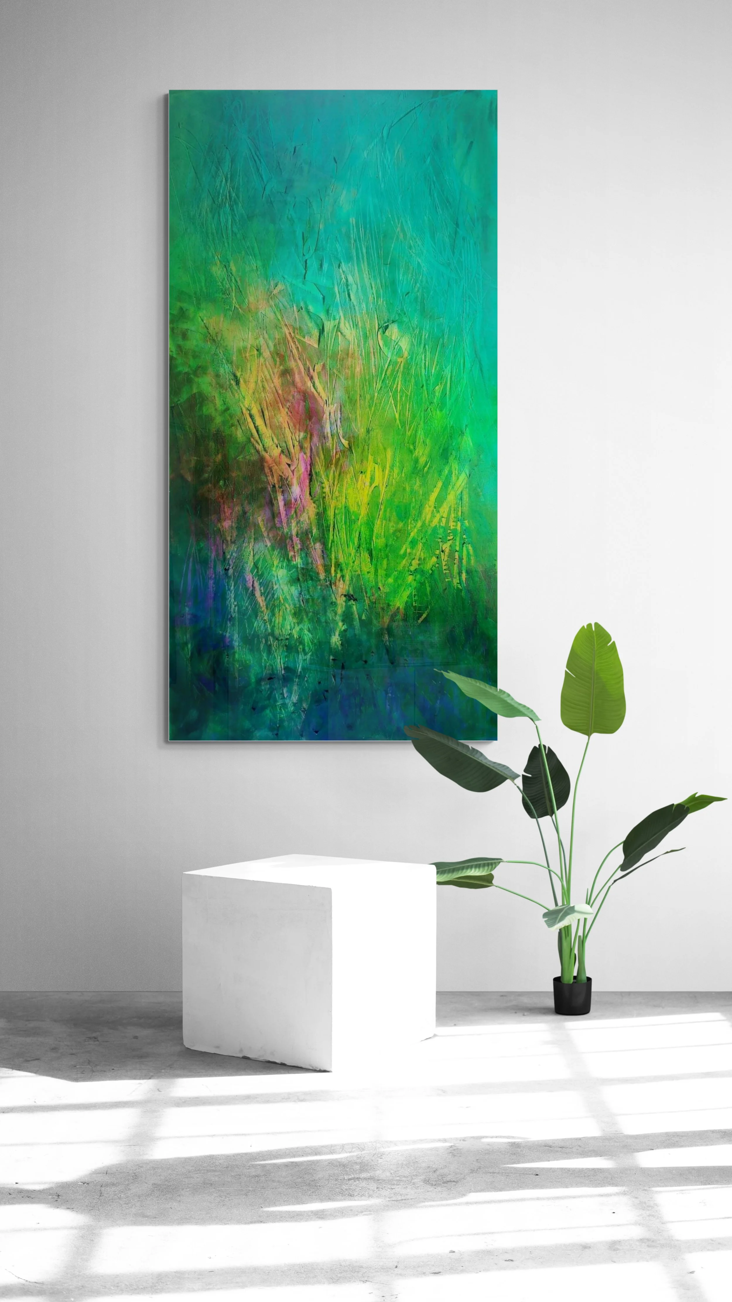 In this new environment, my work shifted. The palette softened, the compositions widened, and the gestures loosened into something more organic, intuitive, and alive. The paintings in Spring ’25 carry the sensation of stepping into nature after years of compression — the first full breath taken in an altitude where the mind clears and the heart recalibrates.