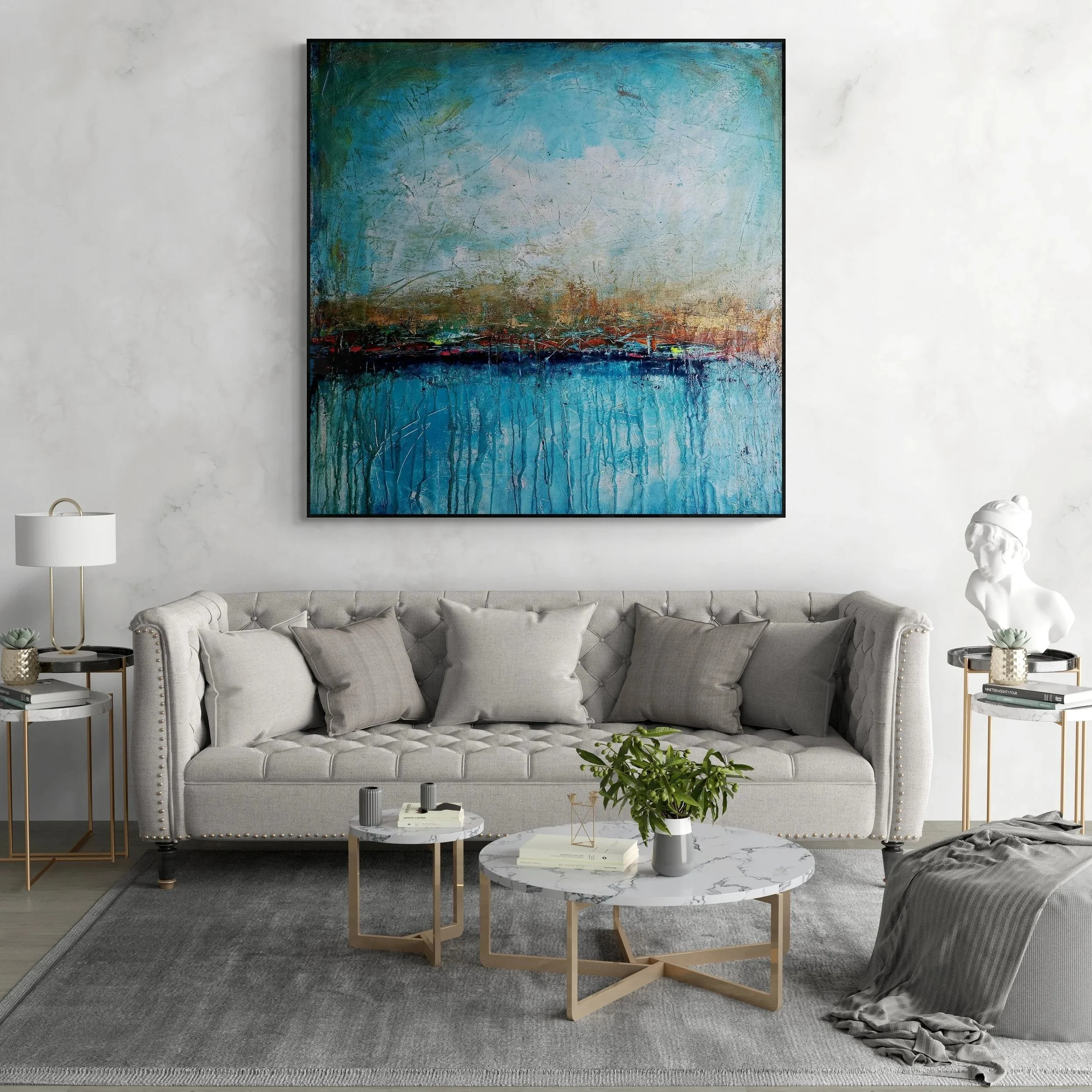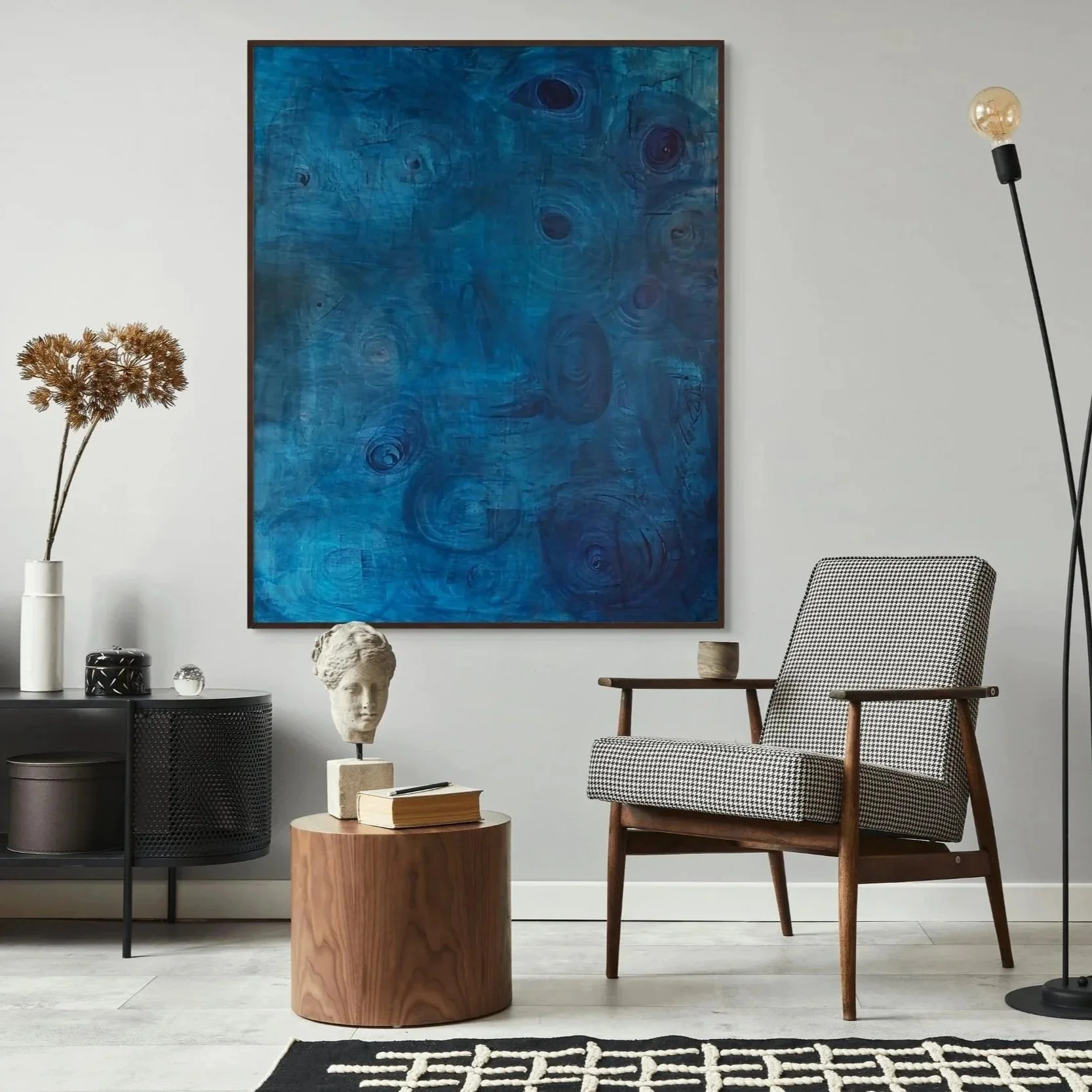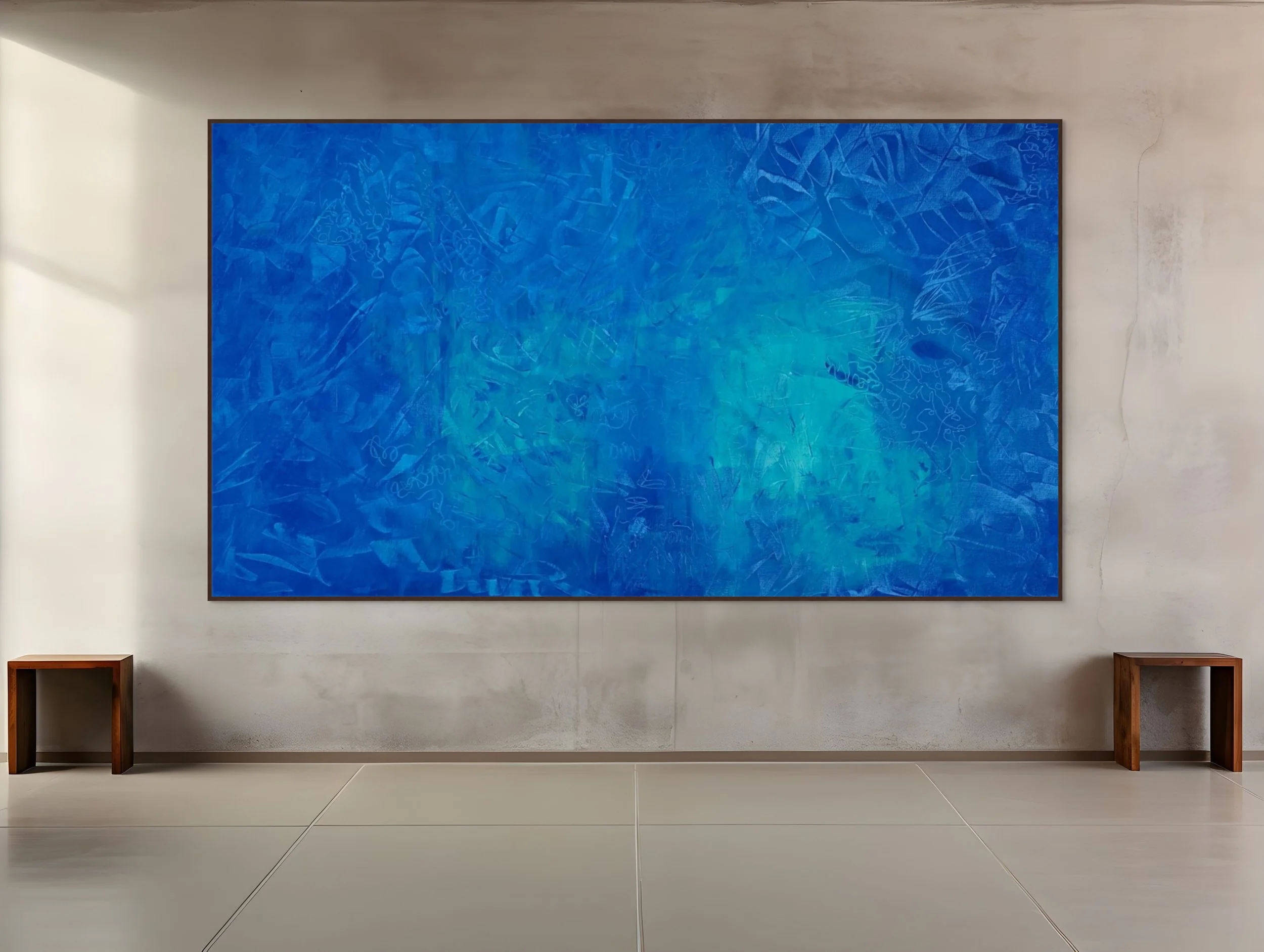 These works are designed to remain coherent at distance and in motion. In hospitality and corporate environments, art is rarely experienced up close — it is perceived while walking, under changing light conditions, and often in peripheral vision. I build each painting with: